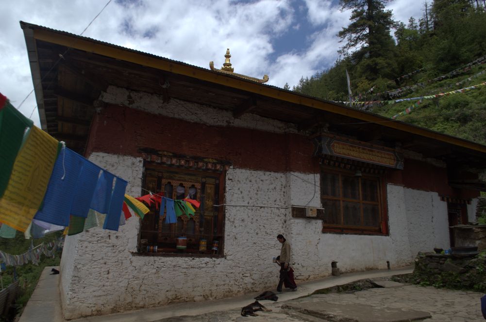 Mini prayer flags in front of Lhading Temple.