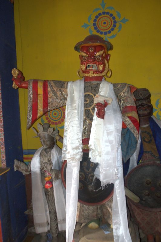 According to legend, Guru Rinpoche originally went to place that would later become Taktsang, or the Tiger’s Nest, in order to subdue a local demon named Singye Samdrup. By manifesting as the wrathful and powerful Guru Dorje Drolö, Guru Rinpoche was able to defeat the demon and bind him into serving the Buddhist teachings. Singye Samdrup is now propitiated at Taktsang as one of the