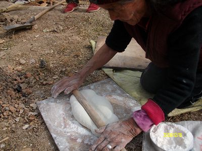 Making bread with hot, burnt soil is one of Chentsa's specialties. Local people call this bread korja. Making this bread requires a lot of time, effort, and resources. Necessary material include dried soil, wood, and straw. Bread-makers must start burning the soil very early in the morning in order to have time to cook several batches of bread: sometimes up to twenty or thirty loaves in one